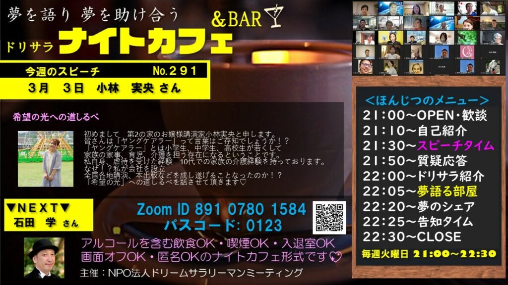 さて、次回3月3日(火) 21:00~のドリサラナイトカフェは…